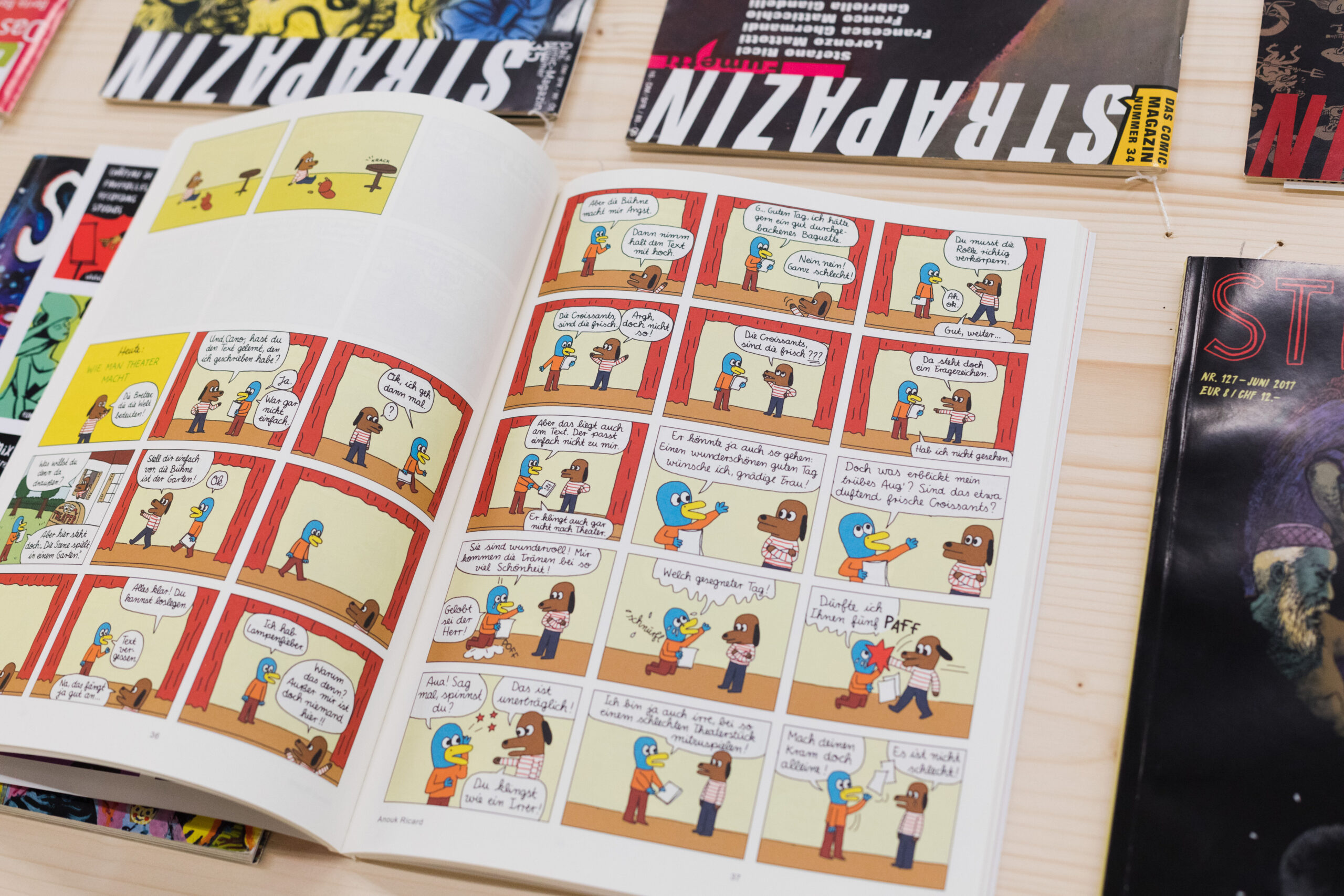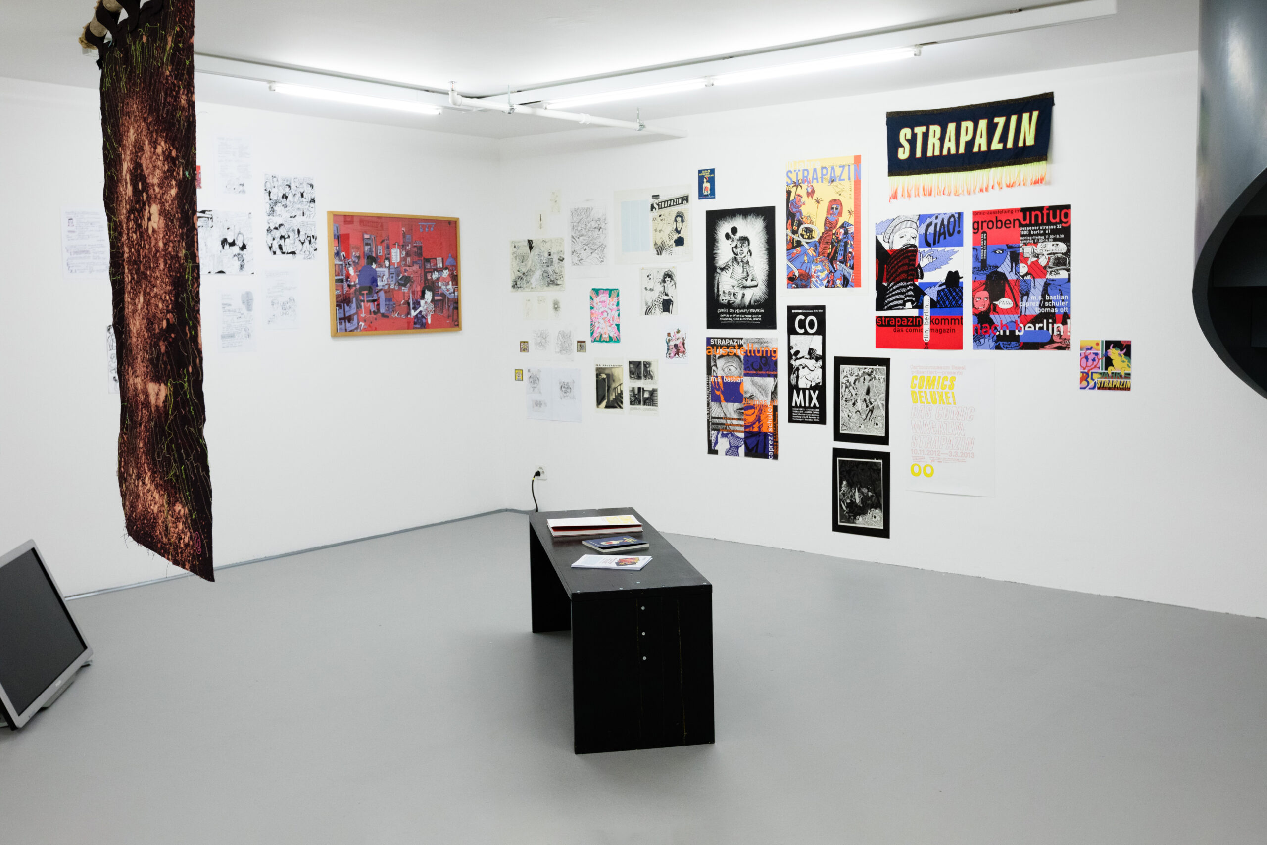 Strapazin hat sich seit seiner Gründung 1984 zum wichtigsten Comic-Magazin im deutschsprachigen Raum etabliert und feierte jüngst sein 40-jähriges Jubiläum. Im Zentrum der Schau steht ein begeh-, greif- und lesbarer Zeitstrahl mit allen 158 Strapazin-Ausgaben, voll mit über tausend vielfältigen Comicgeschichten. Ausgehend von fünf ausgewählten Heftcovern – eines für jede vergangene Dekade sowie eines für die kommende – entstand jeweils eine Geschichte in vier Sequenzen, die in grosszügigen Originalen an den Wänden der Kunsthalle zu sehen sind und stellvertretend für die kunterbunte Strapazin-Comicfamilie stehen.